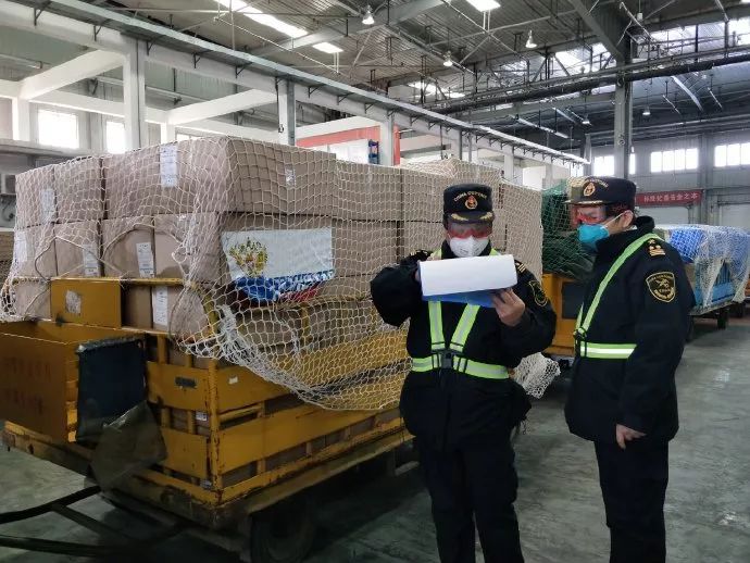 16噸境外捐贈(zèng)防疫物資在武漢天河機(jī)場(chǎng)海關(guān)快速通關(guān)