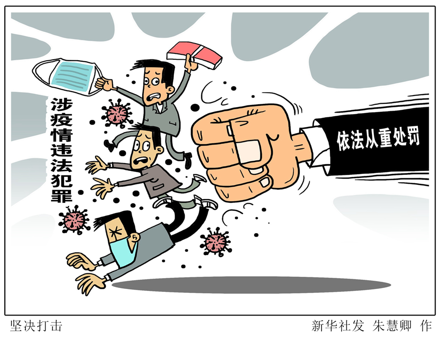執(zhí)法司法的鐵面莊嚴(yán),彰顯庇佑民生的溫情。在疫情防控期間實(shí)施有關(guān)違法犯罪的,政法機(jī)關(guān)作為從重情節(jié)予以考量,依法體現(xiàn)從嚴(yán)的政策要求。 疫情發(fā)生以來(lái),全國(guó)公安機(jī)關(guān)查處擾亂社會(huì)秩序類案件377起,干擾疫情防控類案件83起,妨害公務(wù)類案件55起;破獲非法獵捕珍貴野生動(dòng)物、非法狩獵等刑事案件19起,抓獲犯罪嫌疑人29名;破獲涉疫情詐騙案件1116起,抓獲犯罪嫌疑人294名,追繳贓款660余萬(wàn)元…… 新華社發(fā) 朱慧卿 作