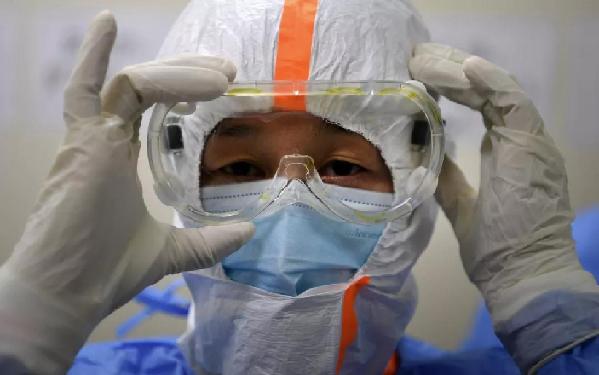 武漢協和醫院(西院),湘雅醫院感染病科醫生在戴護目鏡。經濟日報記者高興貴攝