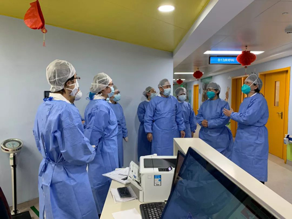 他不僅是一位專家,更是一位家長。不放心醫療隊員們的自我防護,他到現場親自督導隊員做穿脫防護服的演練;為了給隊員們加油鼓勁,他親自把即將進入病房的隊員們送到門口。