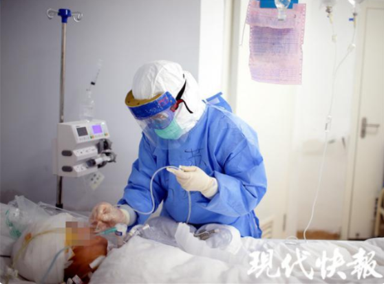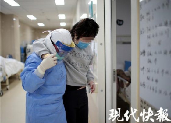 2月18日下午,現(xiàn)代快報記者走進(jìn)“紅區(qū)”——重癥隔離病房里,用鏡頭記錄下一組組“我和你”的故事。