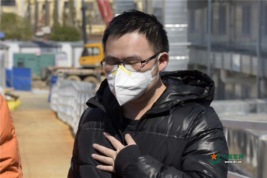 2月20日,走出病房,萬先生激動不已。中國軍網記者范顯海 攝