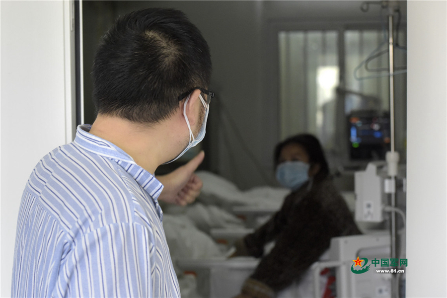 住院期間,萬先生為其他患者加油鼓勁。中國軍網記者范顯海 攝