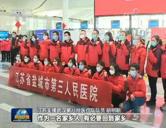 江蘇支援武漢第八批醫(yī)療隊(duì)隊(duì)員 胡明朝:在疫情的關(guān)鍵時(shí)期,全國人民支持。作為一名家鄉(xiāng)人,有必要回到家鄉(xiāng),做出我自己的貢獻(xiàn)。