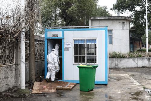 2月26日,湖北省武漢市,幾名醫療廢物處理員在醫療垃圾暫存點搬運。中青報·中青網記者 趙迪/攝