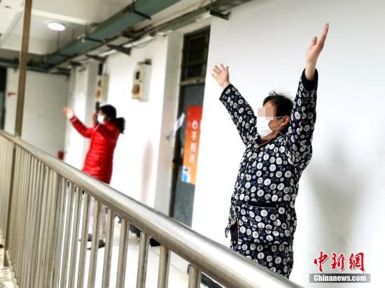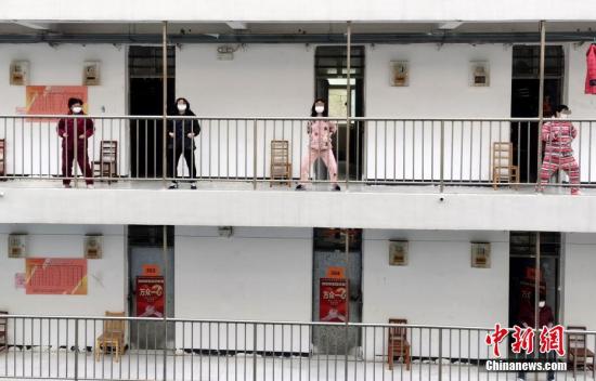 29日中午,作為康復(fù)期患者隔離點的武漢軟件工程職業(yè)學(xué)院5棟宿舍樓響起了音樂,人們戴上口罩走出房門,站在“口”字型走廊上練起八段錦和太極拳。