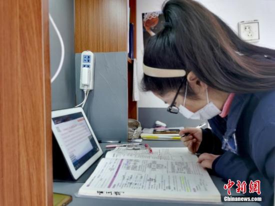 治愈出院患者在隔離點上網(wǎng)課。 安源 攝