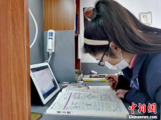 治愈出院患者在隔離點上網課。