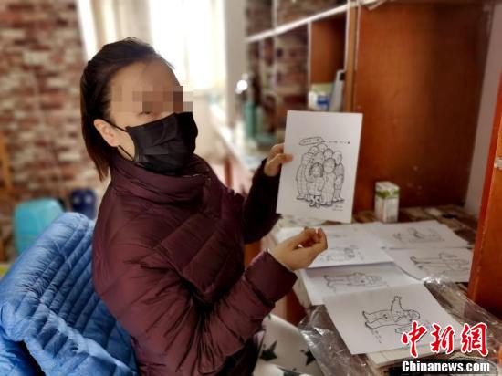 治愈出院患者展示自己創作的漫畫。