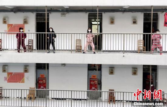 2月29日,中新網記者走進武漢軟件工程職業學院治愈出院患者隔離點進行探訪。武漢市新冠肺炎疫情防控指揮部日前發出的第16號通告,要求對治愈出院患者實施14天康復隔離及醫學觀察,武漢軟件工程職業學院治愈出院患者隔離點自21日起有出院病患入住,截至28日共收治了650余人。圖為治愈出院患者在練八段錦。
