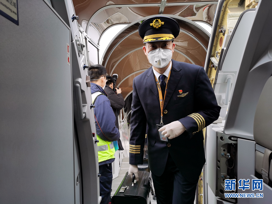 2月2日,全國“最美退役軍人”劉傳健主動申請執(zhí)飛運輸任務(wù),護送四川第三批支援湖北醫(yī)療隊醫(yī)護人員和物資赴武漢。 新華社發(fā)