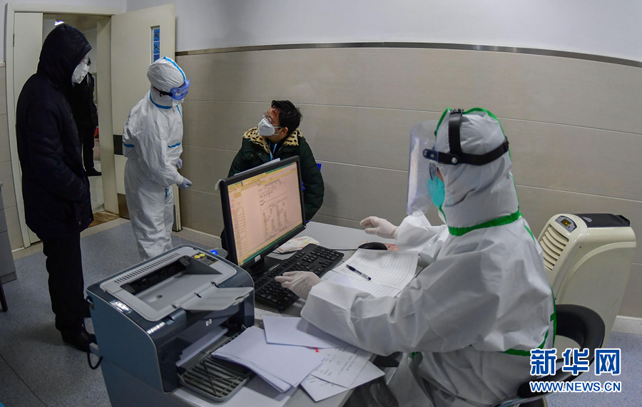 2月1日,在湖北省榮軍醫(yī)院發(fā)熱門診,醫(yī)生王琴(右一)和護士劉蕭(左二)接診發(fā)熱患者。 新華社發(fā)(劉中燦 攝)