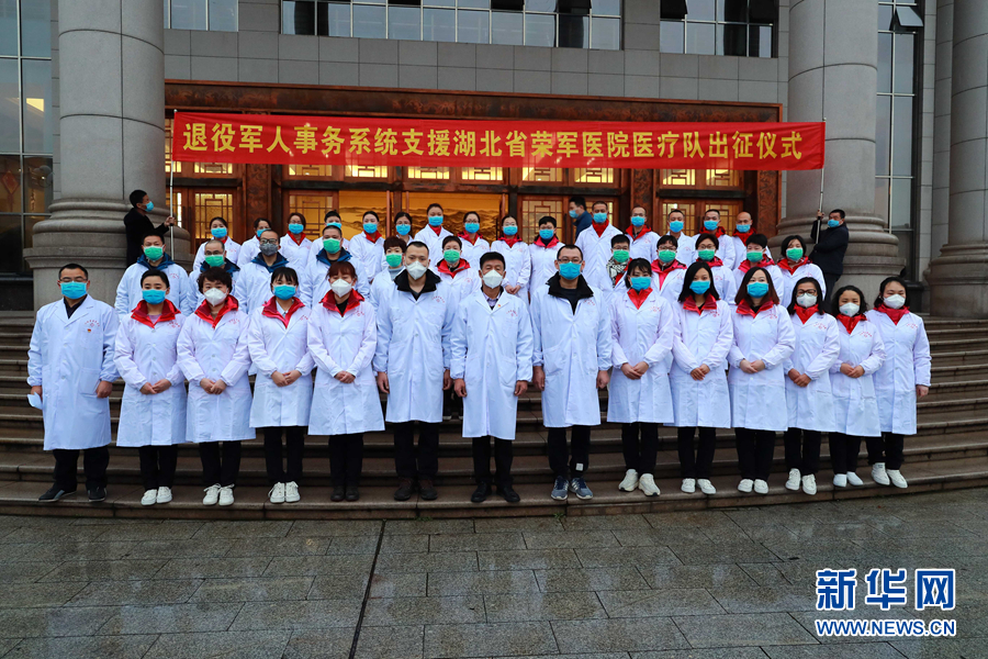 2月11日,退役軍人事務(wù)部組建首支醫(yī)療隊馳援湖北省榮軍醫(yī)院。這是出征儀式現(xiàn)場。新華社發(fā)(曹舒昊 攝)