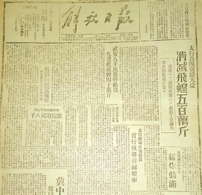 1944年9月27日《解放日報》:太行各縣剿蝗大捷,消滅飛蝗五百萬斤