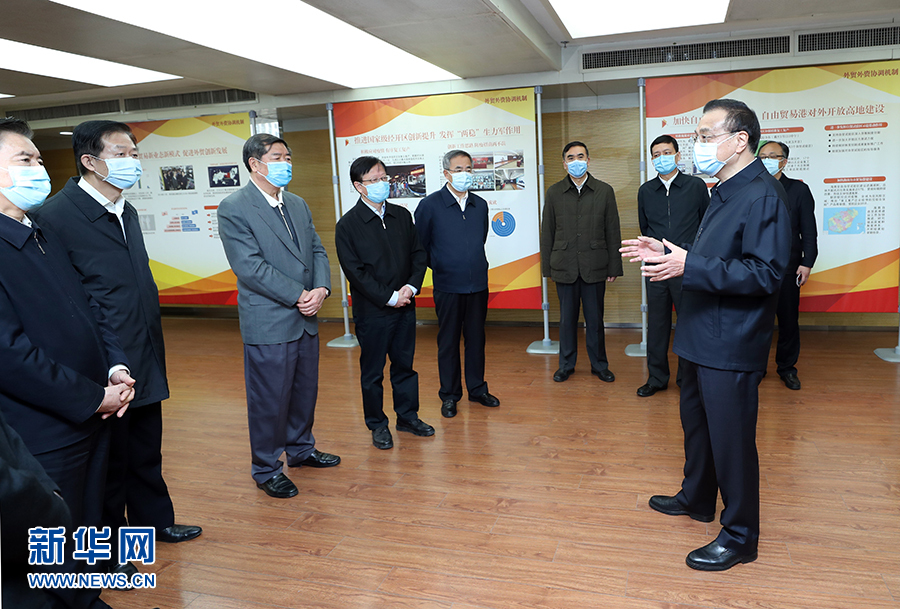 3月13日,中共中央政治局常委、國務院總理、中央應對新冠肺炎疫情工作領導小組組長李克強在北京考察全國市場運行與流通發展服務平臺、外貿外資協調機制。 新華社記者 姚大偉 攝
