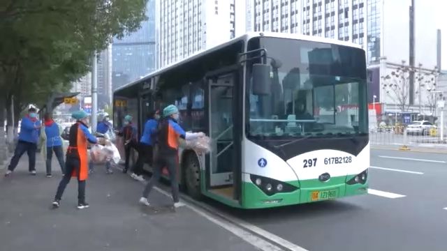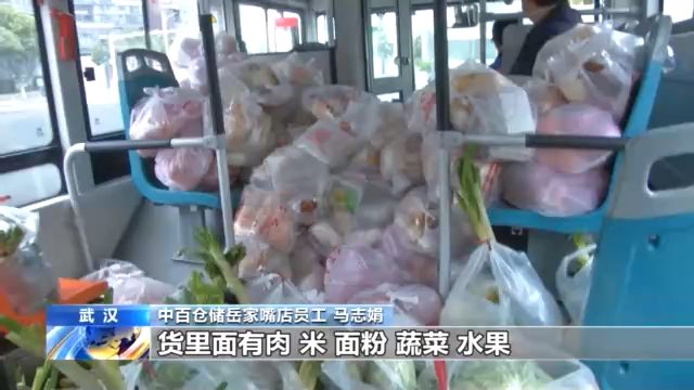 十點整,運送1500包愛心菜和500多包其它生活物資的專車來了:一輛297路公交車。為了提高運輸效率,武漢市公交集團承接了全市社區(qū)團購的集中配送任務(wù)。幾十名超市員工組成“人力傳送帶”把物資送上車。很快,公交車出發(fā)了。