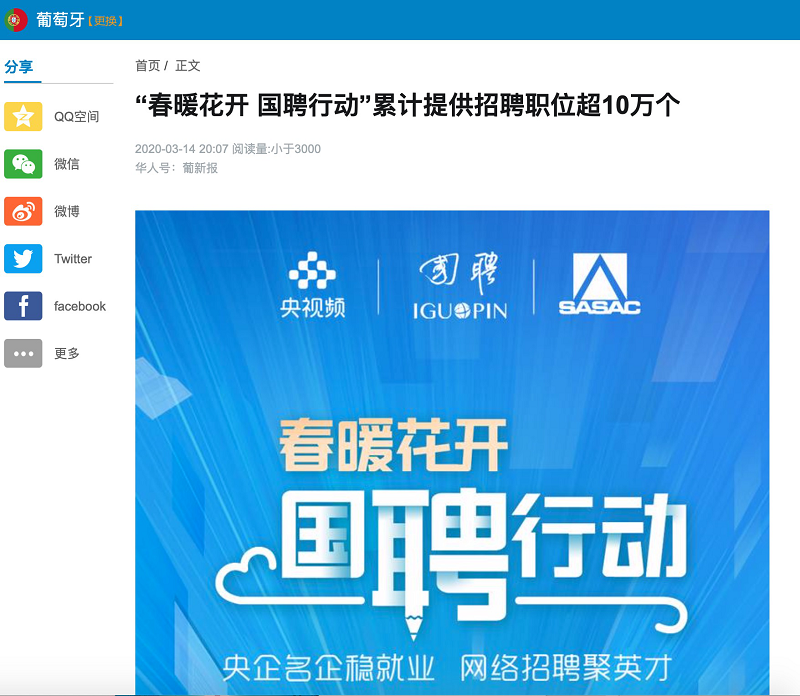 由中央廣播電視總臺“央視頻”攜手國投集團,與國務院國資委共同推出的大型線上招聘活動——“春暖花開 國聘行動”,自3月2日啟動以來,企業踴躍參與,求職者紛紛投遞簡歷。截至3月14日已面向社會提供了超10萬個招聘職位,累計入駐企業近2500家,引發眾多媒體和網站轉載報道。