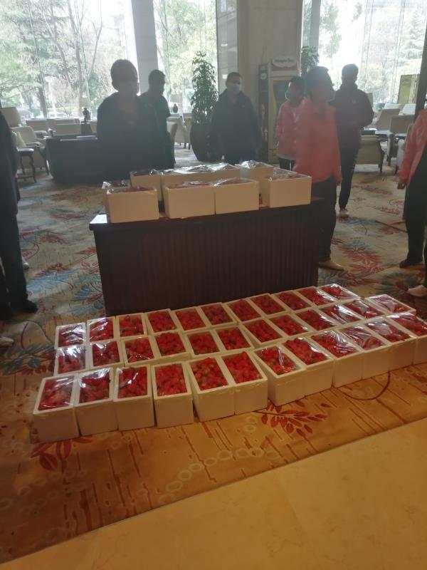 據前來送草莓的康復患者稱,這些草莓是江岸方艙醫院64名病友花費了1.6萬元購買送給河北的醫護人員。為了保證草莓的新鮮,武漢當地農民從凌晨3點就開始采摘。“這是我們的一點心意,如果不是你們的幫助,單靠武漢的醫務人員確實是挺不住的,很感謝你們從全國各地來幫助我們,這次疫情來的很突然,我的母親也因病毒感染去世。小家的母親走了,但是你們卻拯救了武漢這個大家。非常感謝你們。希望大家把這點心意和問候帶回河北,同時也希望大家一路平安,感謝你們對我們武漢的很大幫助。謝謝大家!”