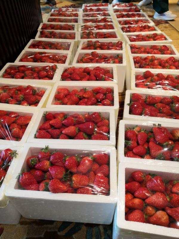 18日,河北省部分援鄂醫護人員將返回河北,獲悉這個信息后,在17日上午,武漢市江岸方艙醫院治愈的患者將百余箱新鮮草莓送到了河北醫護人員手里。