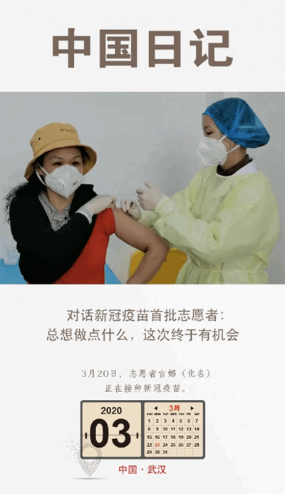 “一直也沒能為武漢做點(diǎn)貢獻(xiàn),這次終于有機(jī)會(huì)了。”抱著試一試的心態(tài),吉娜報(bào)了名,沒想到竟然通過了。3月18日吃完午飯,她接到武漢市疾控中心告知審核通過的電話,下午體檢完,第二天就去正式接種了新冠疫苗。