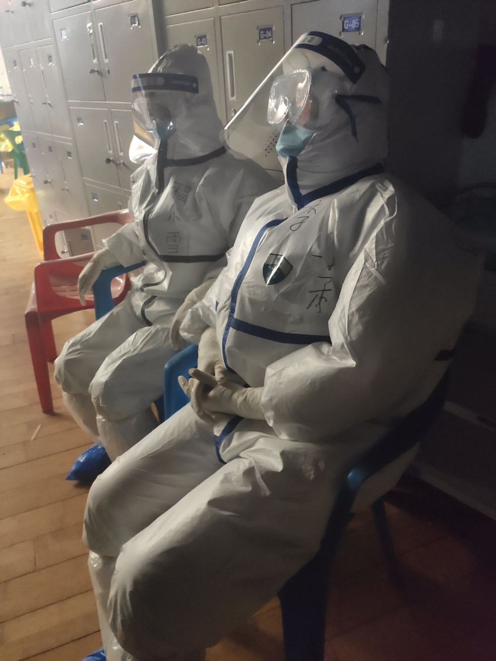 圖為貴州醫科大學附屬醫院援武漢醫療隊程小雪與同事。
