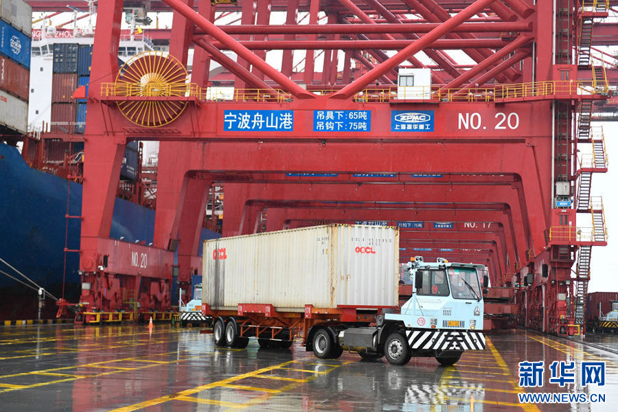 3月29日下午,寧波舟山港穿山港區碼頭,春雨瀝瀝。