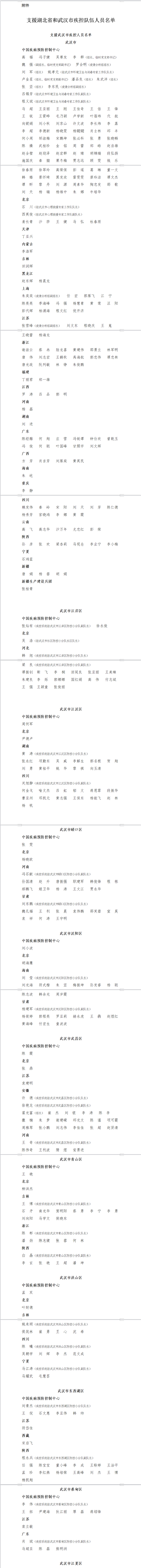 國家衛(wèi)生健康委疾控局關(guān)于印發(fā)支援湖北省和武漢市疾控隊(duì)伍人員名單的通知