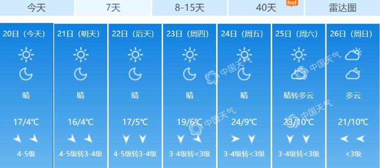 今天,北京依然是北風勁吹的一天,根據市氣象臺今晨6時發布的預報,今天白天,北京晴,北風4~5級(陣風7~8級),最高氣溫17℃;夜間晴,北風4級左右,最低氣溫4℃。