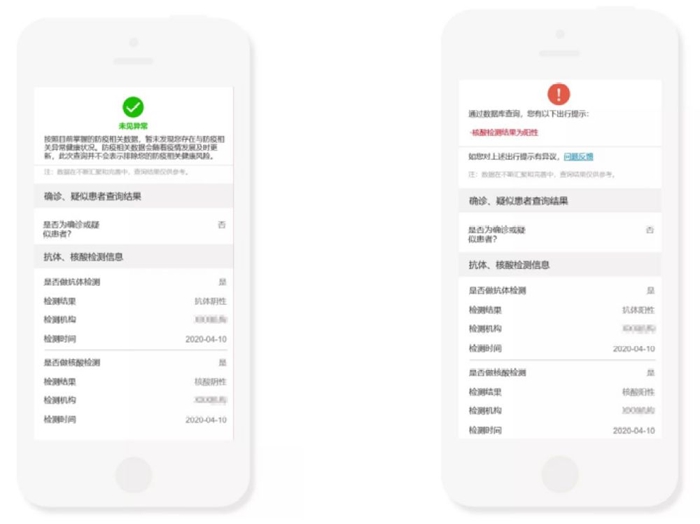 此外,核酸和抗體檢測結果信息還納入了全國一體化平臺“防疫健康信息碼”服務。用戶可通過國家政務服務平臺微信、支付寶、百度小程序,根據操作指引申領國家平臺的“防疫健康信息碼”,“防疫健康信息碼”會如實反映本人7天內核酸及抗體檢測結果。如核酸檢測結果為陰性,則防疫健康風險狀態顯示“未見異常”。如核酸檢測結果為陽性,則會出現“核酸檢測結果為陽性”的出行提示。如果7天內未做過核酸及抗體檢測,防疫健康信息會根據個人當前提供的相關數據顯示健康風險結果。