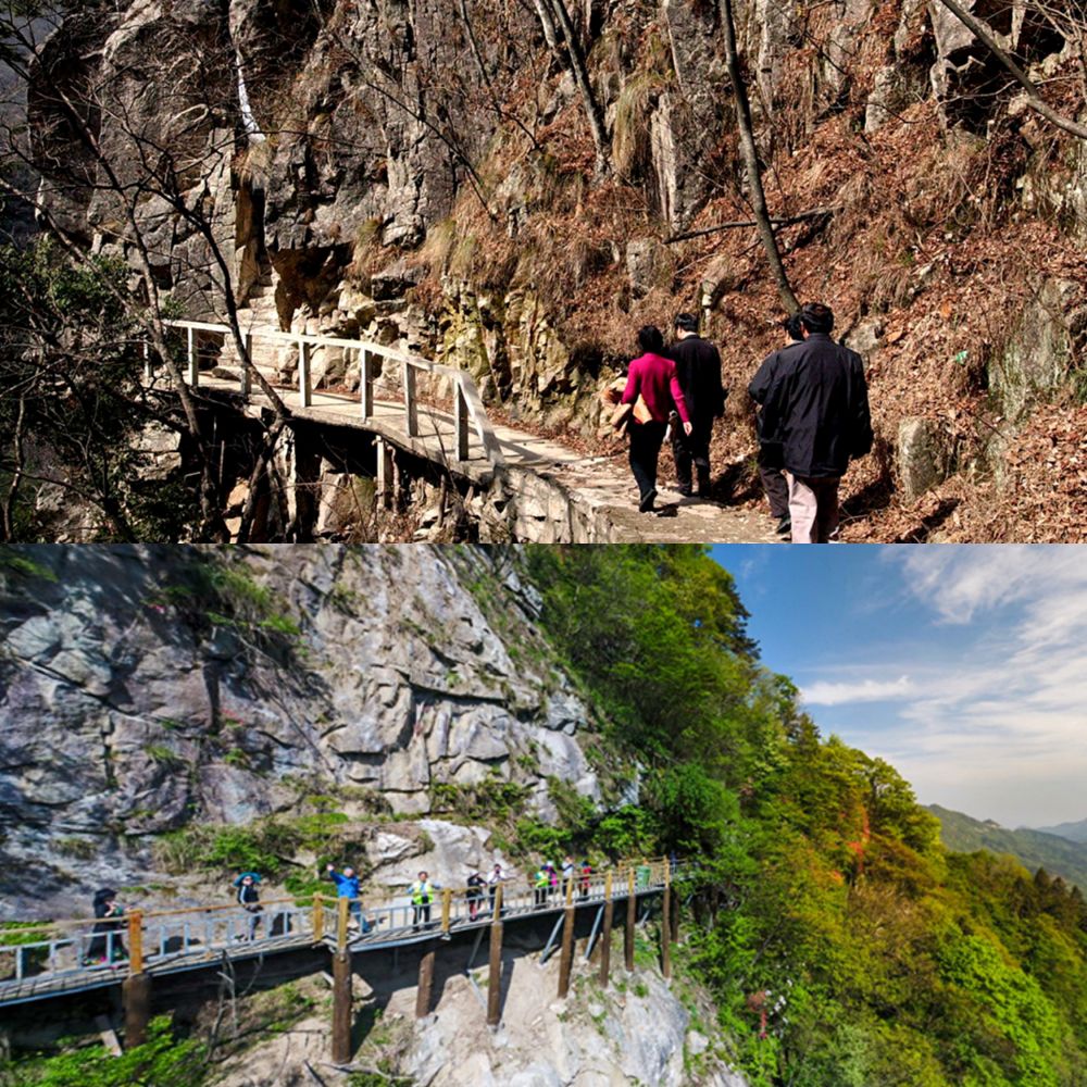 (上圖:2002年的天堂寨,新華社記者于杰攝;下圖2018年的馬鬃嶺自然保護區。新華社記者郭晨攝)