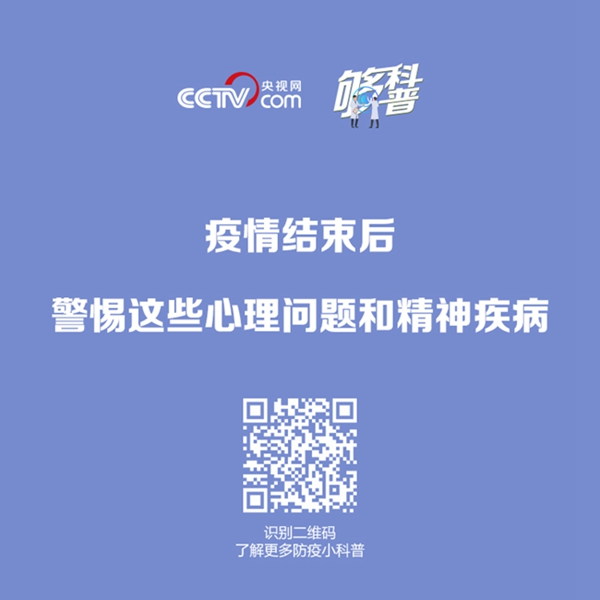 新冠肺炎疫情影響范圍之廣、持續(xù)時(shí)間之長、程度之重,身處其中的每個(gè)人都有切身感受。通過積極的應(yīng)對和干預(yù)措施,大家能夠逐漸恢復(fù)正常生活、學(xué)習(xí)和工作。但在疫情結(jié)束后,可能會有一部分人出現(xiàn)各種各樣的心理問題或精神疾病。疫情結(jié)束后最需要警惕的心理問題和精神疾病有哪些?該如何應(yīng)對?(資料來源:《新型冠狀病毒肺炎心理健康指導(dǎo)手冊》)