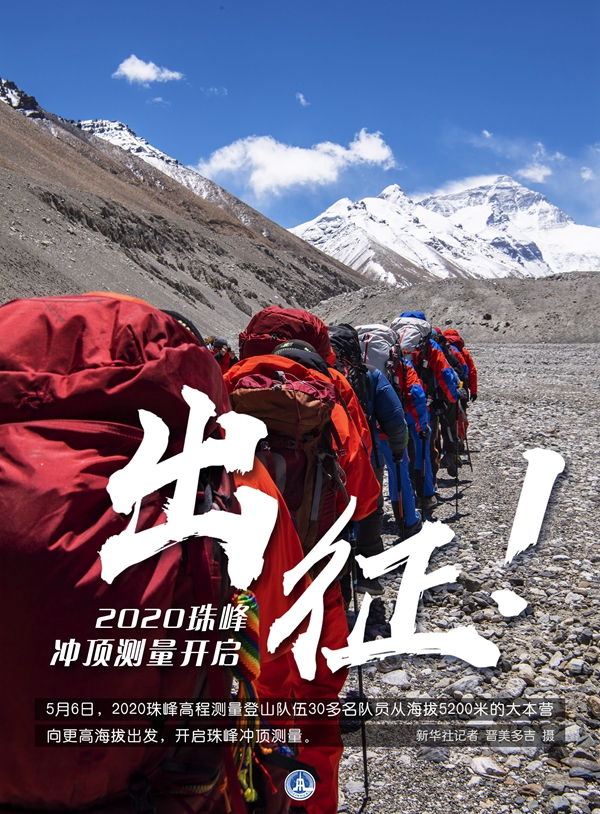 7日,2020珠峰高程測量登山隊從海拔5800米的過渡營地出發,向海拔6500米的前進營地進發。登山隊隊長次落12點35分實時通報:快到6000米了,此刻無風!(記者邊巴次仁、王沁鷗、魏玉坤)