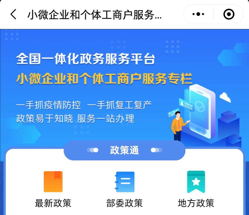 為推動解決疫情期間復工復產難題,國家政務服務平臺推出“小微企業(yè)和個體工商戶服務專欄”。