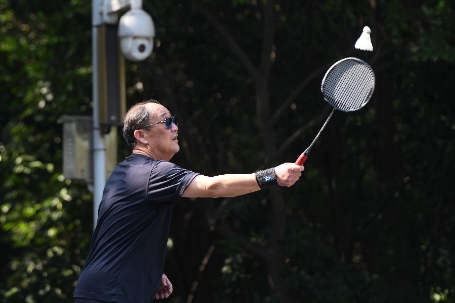 5月3日,一位市民在合肥市環(huán)城公園內(nèi)打羽毛球。 當(dāng)日是“五一”假期第三天,合肥市民紛紛來(lái)到戶(hù)外,健身休閑,樂(lè)享假期。 新華社記者 張端 攝
