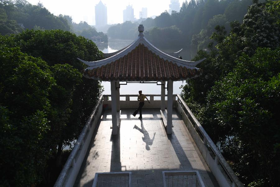 5月3日,市民在合肥市環(huán)城公園內(nèi)晨練。 當(dāng)日是“五一”假期第三天,合肥市民紛紛來(lái)到戶(hù)外,健身休閑,樂(lè)享假期。 新華社記者 張端 攝