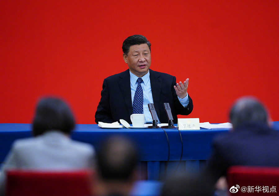23日上午,中共中央總書記、國家主席、中央軍委主席習(xí)近平看望了參加全國政協(xié)十三屆三次會議的經(jīng)濟(jì)界聯(lián)組委員,并參加聯(lián)組會,聽取意見和建議。(文字記者:張曉松、鄒偉 攝影記者:謝環(huán)馳)