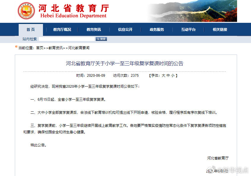 開學!河北省6月15日起全省小學一至三年級復學復課