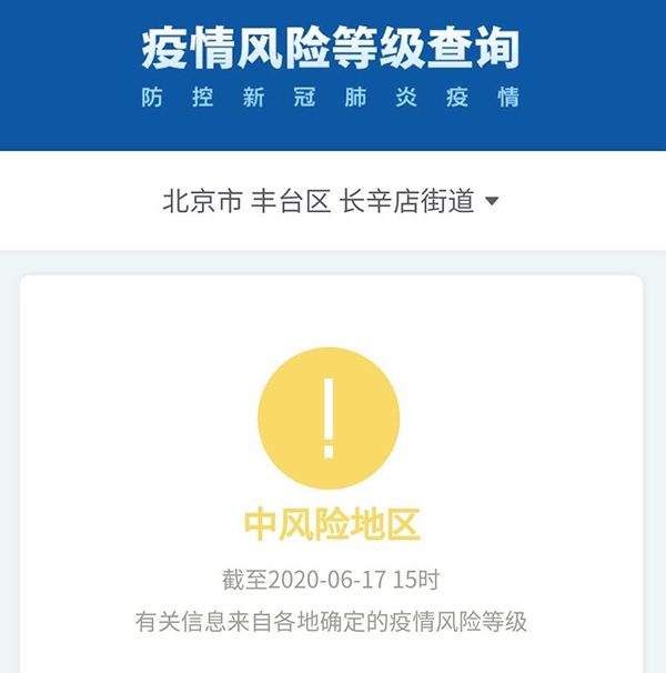 不過,今天有一處調整:豐臺區長辛店鎮升級為中風險地區,而長辛店街道“降級”為低風險地區。