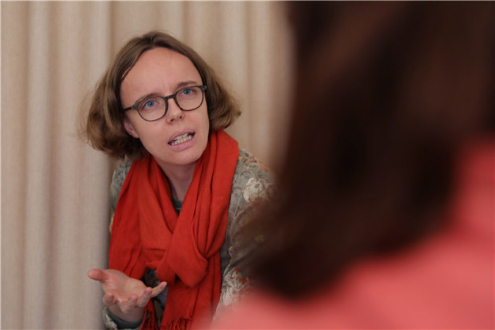 安可悅在位于西寧的心理咨詢工作室輔導(dǎo)一名來(lái)訪者(2019年10月22日攝)。新華社記者 趙玉和 攝