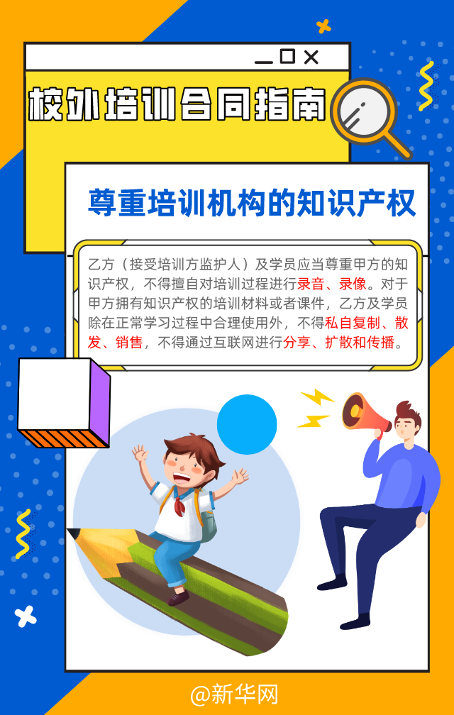 長期以來,校外培訓機構的資質問題,以及部分培訓機構存在違規收費、退費難、卷款“跑路”現象,這些令學生和家長發愁。教育部、市場監管總局近日發布《中小學生校外培訓服務合同(示范文本)》,供培訓者(學員)監護人與開展中小學生校外培訓的培訓機構簽訂培訓合同時參照使用,為規范校外培訓做出新的探索。一起來看看,這份“國家版”標準合同有哪些亮點?