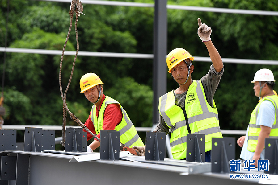 6月9日,工人在位于重慶市巴南區的渝湘高鐵重慶段建設工地現場作業。 新華社記者 唐奕 攝(資料圖)
