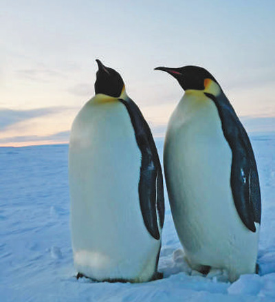5月26日,隊員在普里茲灣海冰觀測途中偶遇的企鵝。孫曉宇攝