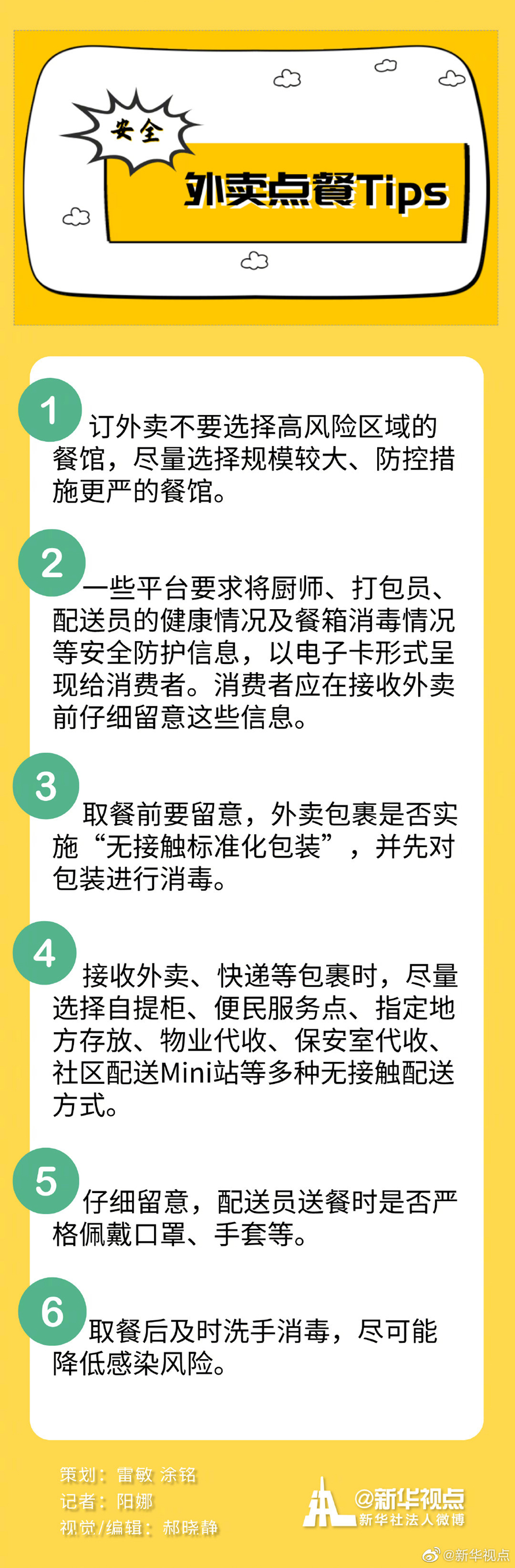 6月23日下午,北京市通報了一例外賣平臺送餐人員感染新冠肺炎的病例。該病例6月1日至17日每日通過“餓了么”平臺接單送餐,平均每天接50單左右。外賣員接觸人員多、暴露風險高,大家開始擔憂,病毒傳播途徑又多了一條。外賣還能點嗎?怎么點外賣、怎么收快遞才能降低被傳染風險?小編為你準備了這份“外賣點餐Tips”,收好!