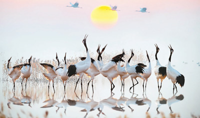 鹽城國(guó)家級(jí)珍禽自然保護(hù)區(qū)里的丹頂鶴。孫華金攝