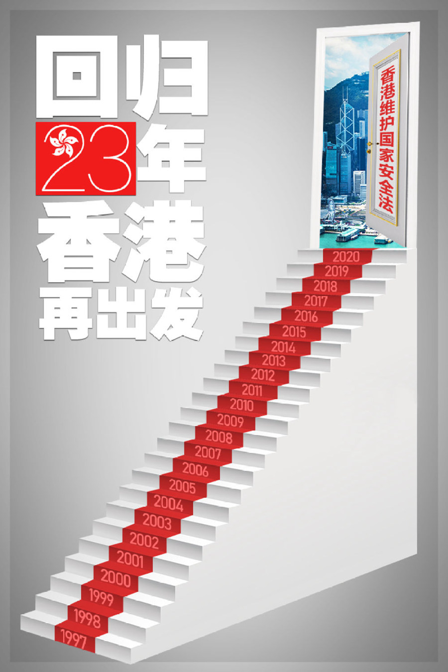 2020年7月1日清晨,香港金紫荊廣場,伴隨嘹亮的國歌聲,鮮艷的五星紅旗和香港特別行政區區旗一同升起,香港特別行政區迎來第23個回歸紀念日。
