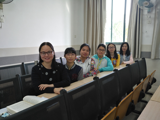 黃燈(左一)給2015級學生上課。受訪者提供
