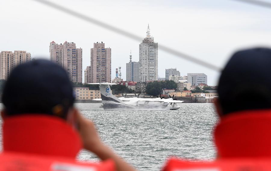 7月26日,水陸兩棲飛機AG600在海面滑行。 新華社記者 李紫恒 攝