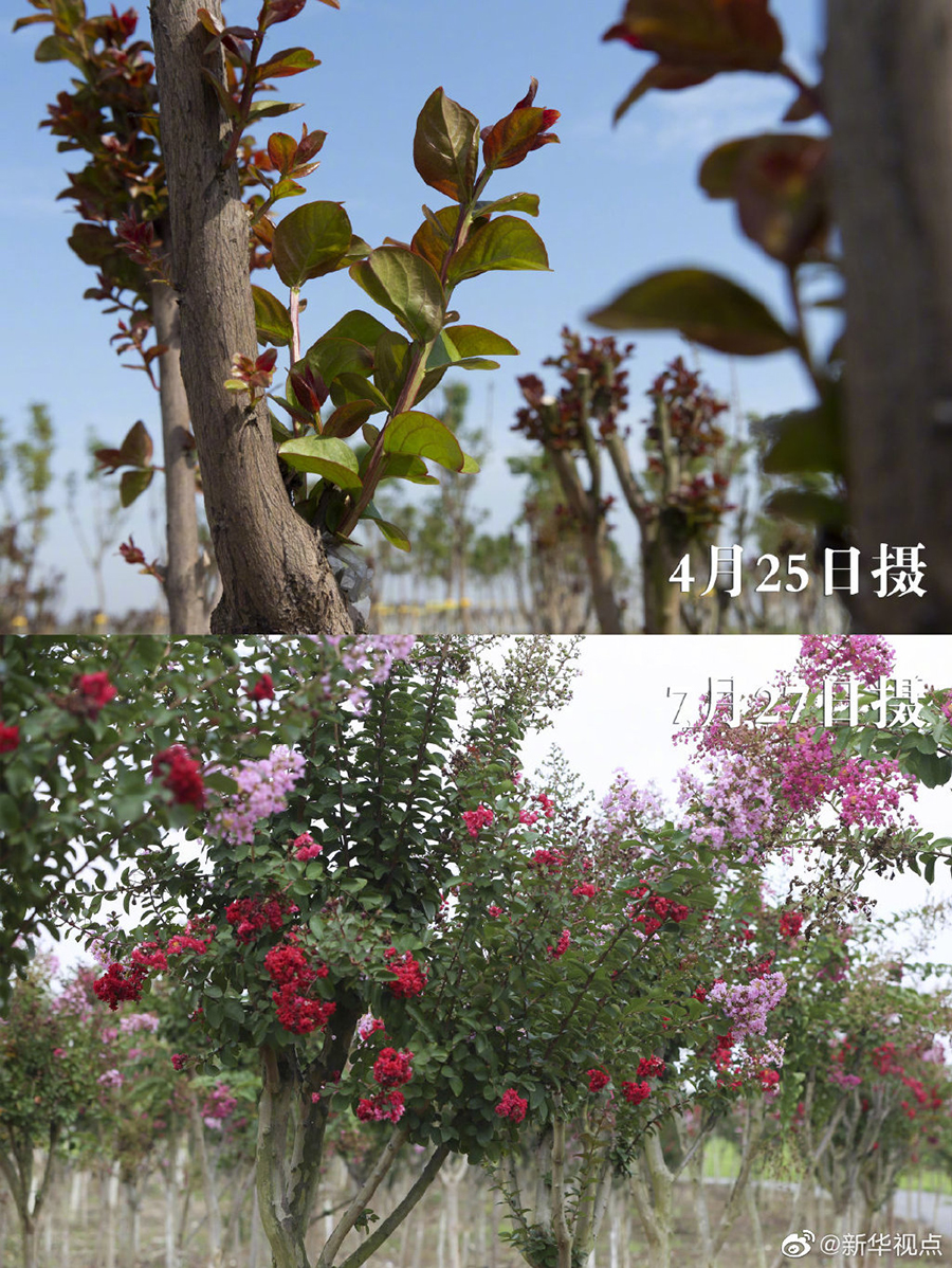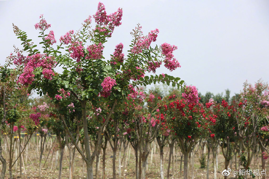 近日,湖北省襄陽市魚梁洲援襄醫(yī)療隊紀念林盛放的紫薇花引人注目。