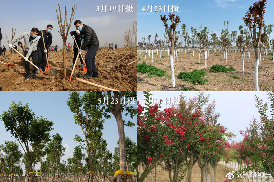 四個多月前的3月19日,遼寧、寧夏、福建援襄醫(yī)療隊代表來到魚梁洲參加援襄醫(yī)療隊紀念林植樹活動。紀念林面積22.5畝,設計為愛心形狀,共2020棵。如今,這片“愛心林”已開花變紅,成為襄陽市一道風景。(記者 謝劍飛,報道員 楊東)