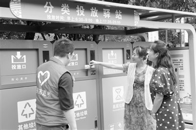 居民自覺垃圾分類、巡檢員常態化監督,居委會、業委會、物業共同落實家庭承包責任制,成了支撐垃圾分類工作貫徹落實的關鍵。
